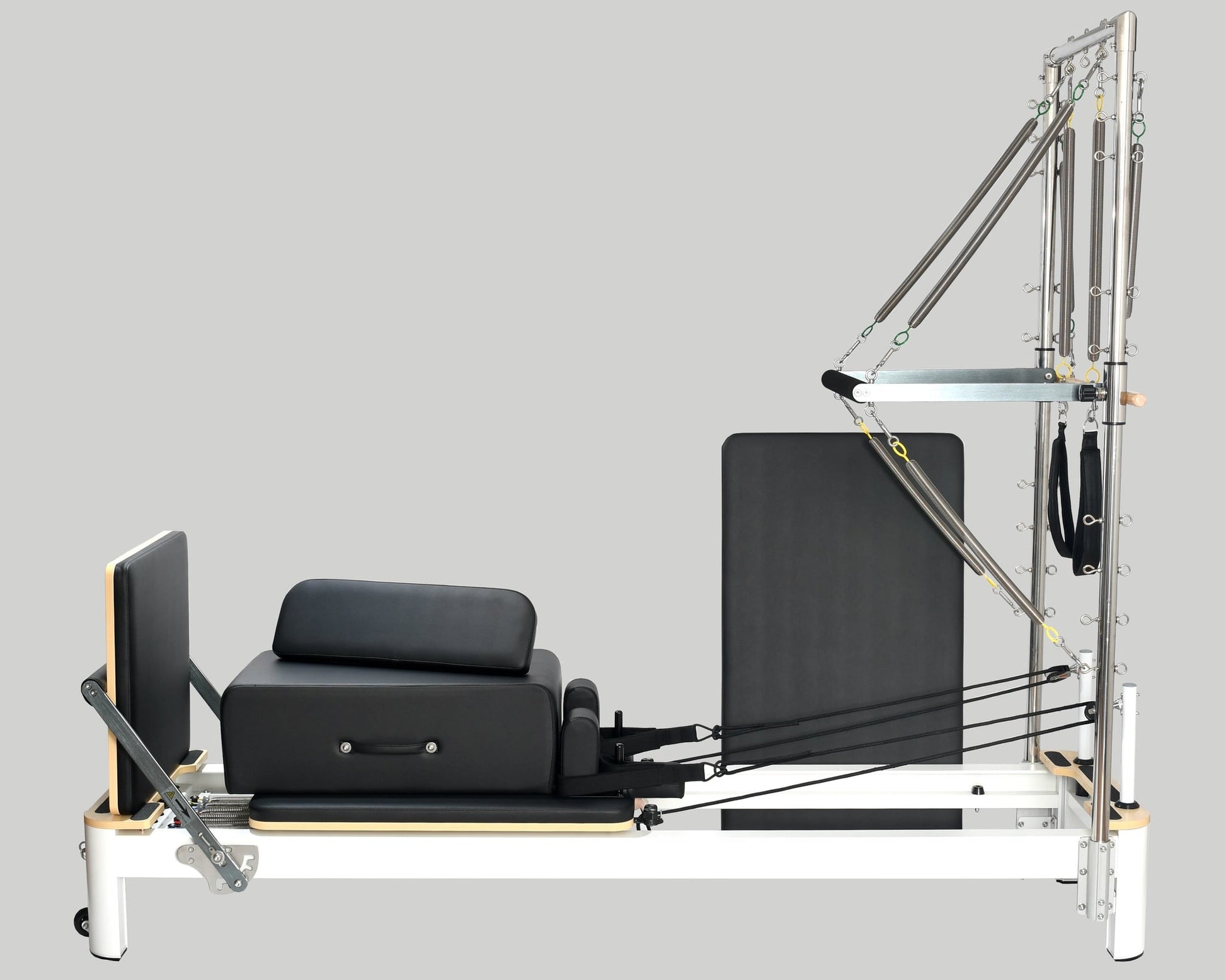 Le pilates reformer en aluminium avec Tower allie design élégant, performance silencieuse et durabilité exceptionnelle. Conçu avec des matériaux haut de gamme — cadre en aluminium, ressorts allemands de précision et cuir microfibre résistant — il garantit une pratique fluide et confortable. Entièrement équipé d'accessoires, il s'adapte à tous les niveaux et offre une infinité de possibilités d'entraînement, que ce soit en studio ou à domicile